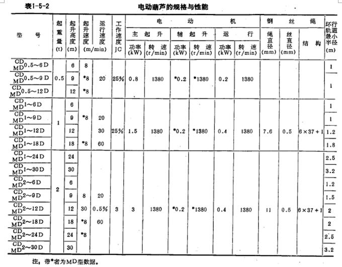 鋼繩的報(bào)廢標(biāo)標(biāo)準(zhǔn)見(jiàn)表1-5-1.電動(dòng)葫蘆的規(guī)格性能見(jiàn)表1-5-2
