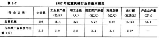 表1-7列出了1987年起重機械行業(yè)經綜合評價后的基本情況。
