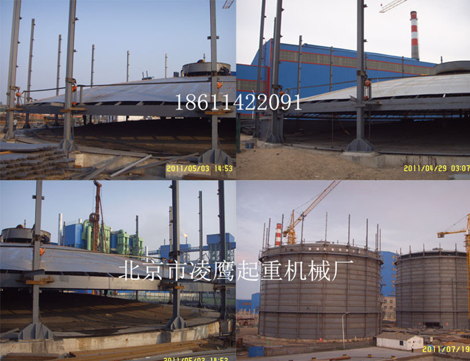 金屬儲(chǔ)罐分類方式很多,根據(jù)頂部結(jié)構(gòu)形式可分為固定拱頂儲(chǔ)罐和浮頂儲(chǔ)罐,其中浮頂儲(chǔ)罐又可分為外浮頂儲(chǔ)罐和內(nèi)浮頂儲(chǔ)罐。目前,金屬儲(chǔ)罐的安裝方法主要有正裝法和倒裝法兩種。①正裝法:在儲(chǔ)罐罐底板鋪設(shè)組焊完成后,罐壁板自下而上依次組裝焊接,最后組焊完成罐頂、抗風(fēng)圈及頂端包邊角鋼等,較適用大型浮頂罐。主要包括水浮正裝法、架設(shè)正裝法(外搭腳手架正裝法和內(nèi)掛腳手架正裝法)等。②倒裝法:在儲(chǔ)罐罐底板鋪設(shè)組焊完成后,先組焊頂層壁板及包邊角鋼、組焊罐頂板,然后自上而下依次組焊每層罐壁板,直至最底層壁板,較適用大型固定罐。主要包括中心柱組裝法、邊柱倒裝法(液壓頂升和電動(dòng)葫蘆提升等)、充氣頂升法和水浮頂升法等。