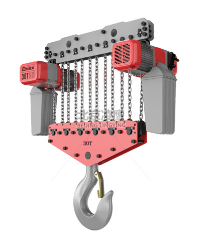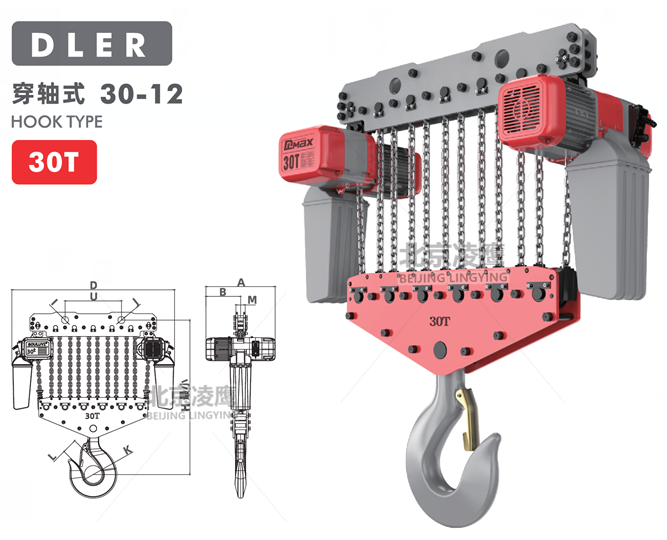 30噸DLER環(huán)鏈電動葫蘆穿軸式重物吊上吊下都有極限開關(guān)裝置,使電機(jī)自動停止,以防止鏈條超出,確保安全。